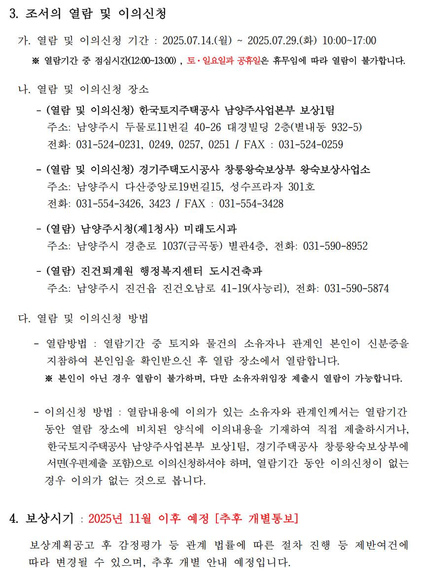 [1] 「진건공공주택지구」(남양주왕숙지구 3단계 사업) 관련, 2025. 7. 14. 보상계획이 공고되었습니다.